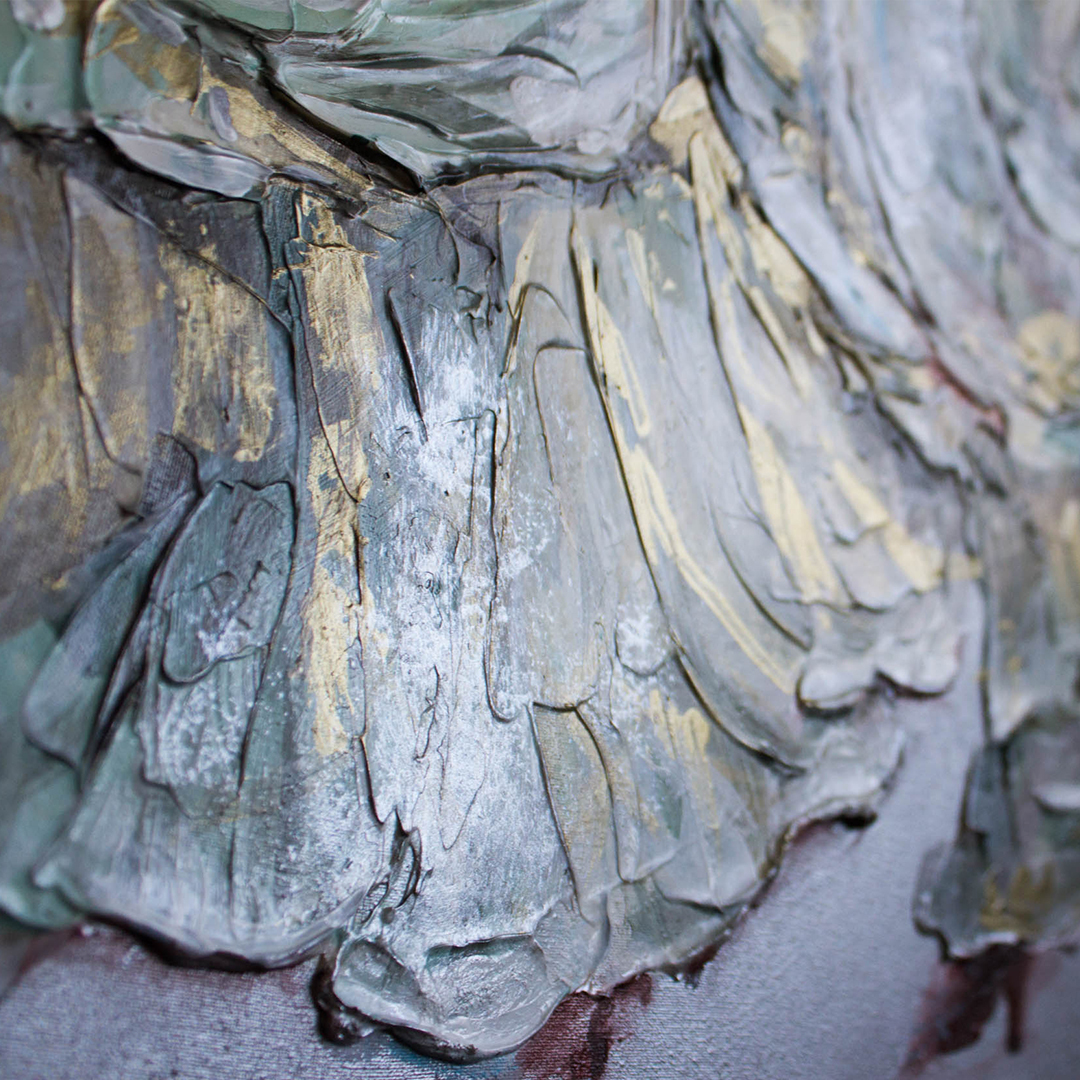 Поверхность картин из эпоксидной смолой глянцевая и глакая, но может быть микс из кристалов и камней, а так же декоративных фактур. Иногда комбинируют с жидким акрилом. А можно добавить не только абстрактные элементы, но и например цветок или птицу из текстурной пасты. К сожалению техника не позволяет делать реалистичные картины, а скорее декоративные, но завораживающие игрой света и фактур.