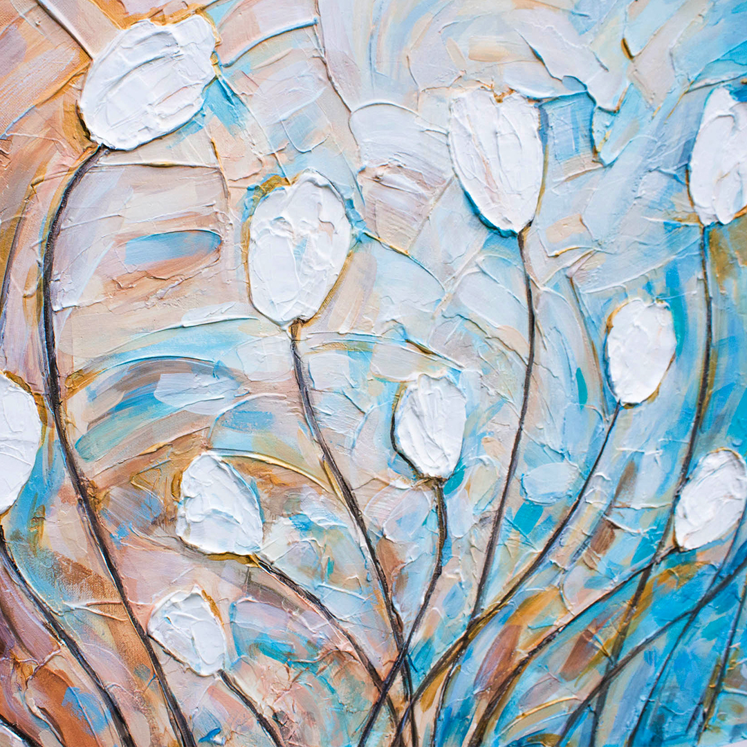 Тут реки краски и эффектов при высыхании могут быть матовыми или немного глянцевыми (но не стеклянными как в смоле). Можно добавлять текстуру и золочение. Картины акрилом можно рисовать в других техниках, например мазками или мастехином, получив не только абстрактые картины, но конкретные сюжены (цветы, пейзаж...)